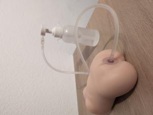 Die Flasche ist leicht mit einer Hand anzuwenden: Greife mit Zeige- und Mittelfinger unter die Plastikösen und benutze deinen Daumen oder deine Handinnenfläche um zu pumpen. Dadurch hast du die andere Hand frei, um das Sexspielzeug festzuhalten oder den Schlauch zu bewegen.